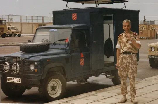Lieut-Colonel Geoff Blurton talks to George Tanton about serving with the Red Shield Services during the Gulf War.