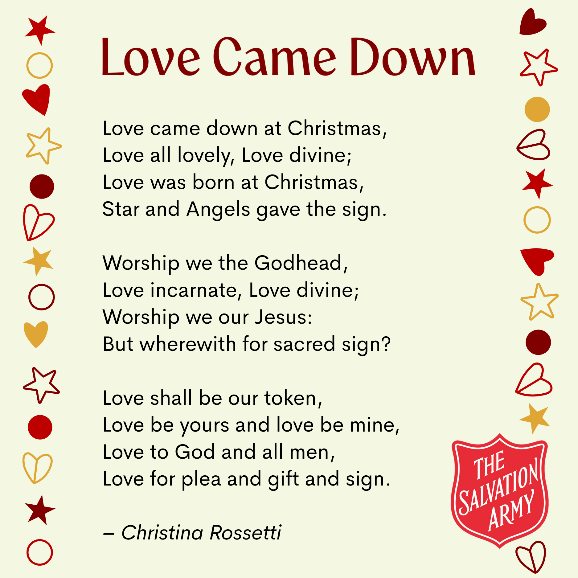 Thank you to Captains Callum and Berri McKenna, Colonel Chris Webb, Lyndall Bywater and Major Sarah Butler for contributing to the 2025 Advent resources.