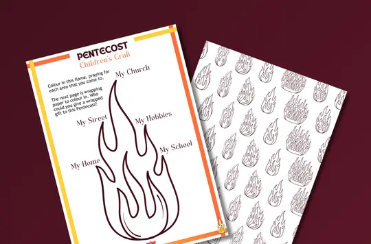 Flame-themed craft activities, inviting children to explore the gift of Pentecost.