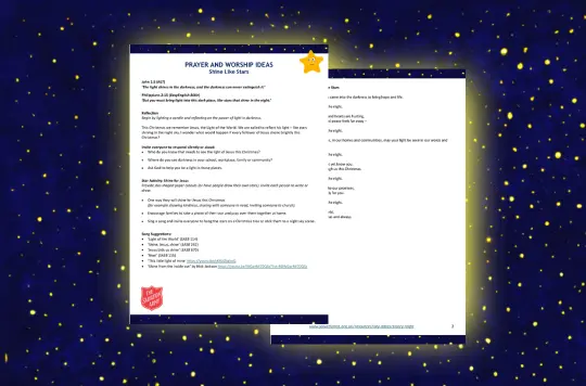 This resource has been created to be easy to use and adapt for school visits, carol services or toy appeals. The video tells the Christmas story around the song 'A Starry Night'. It features a narrator, a Salvation Army brass band and art.
