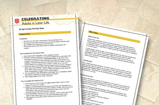 Worship ideas for all ages, featuring a treasure hunt and other activities to celebrate the journey of life.